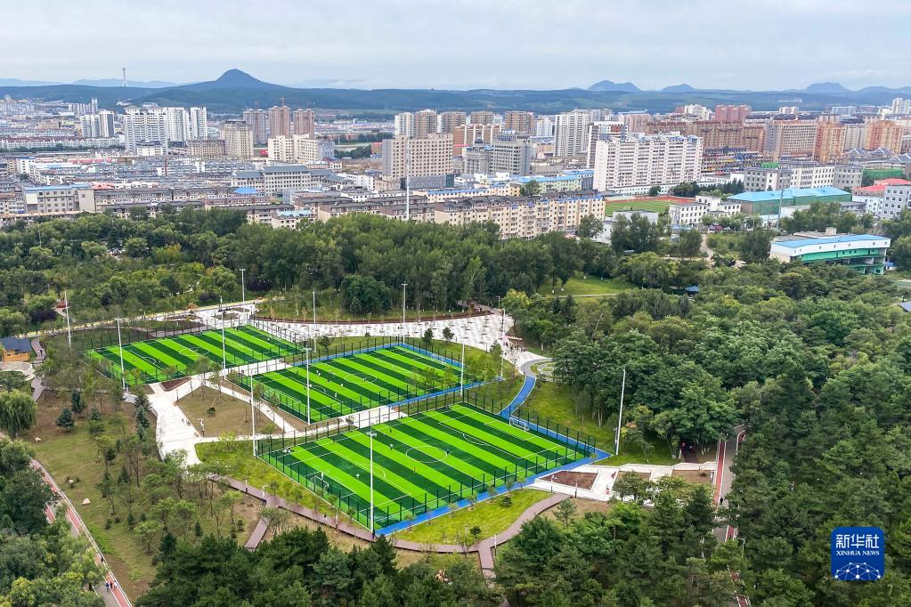 這是延邊朝鮮族自治州延吉市人民公園內的足球場(9月4日攝)。