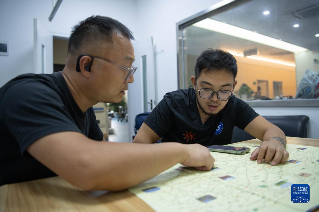 7月16日,在“川藏線”自駕出發前,何鵬(右)和朋友一起確定行程路線。