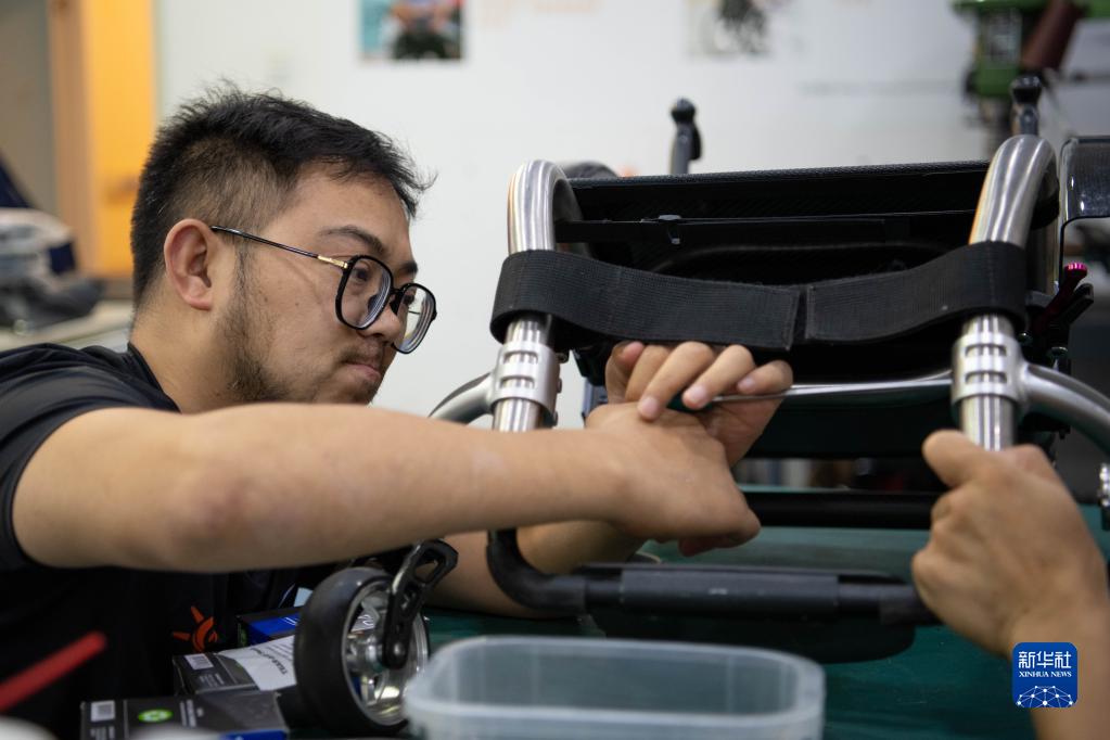 7月16日,在“川藏線”自駕出發前,何鵬檢修自己的輪椅。