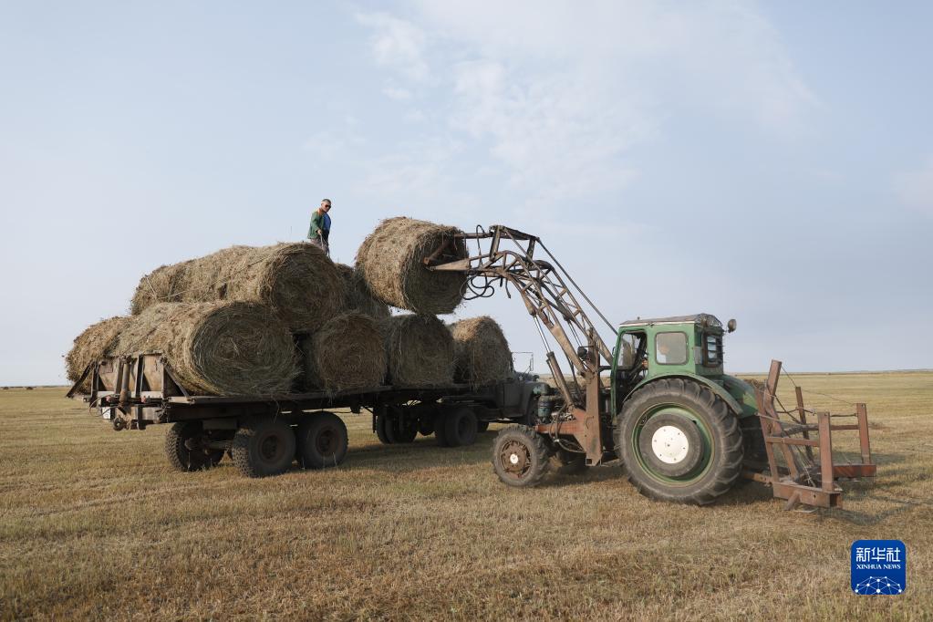 哈薩克斯坦北部地區9月進入牧草集中收割的季節,成片的牧草被牧民收割、曬干并捆成草垛,以備牲畜在冬季食用。新華社發(奧斯帕諾夫攝)