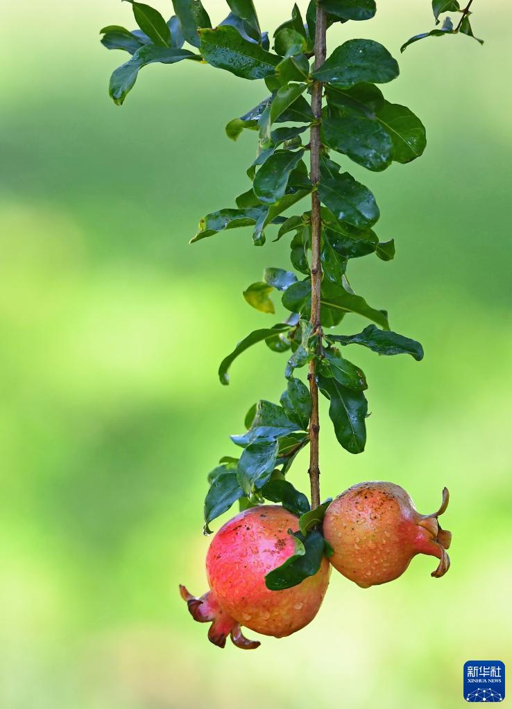 9月4日,在山東省滕州市西崗鎮,農戶種植的石榴即將成熟。