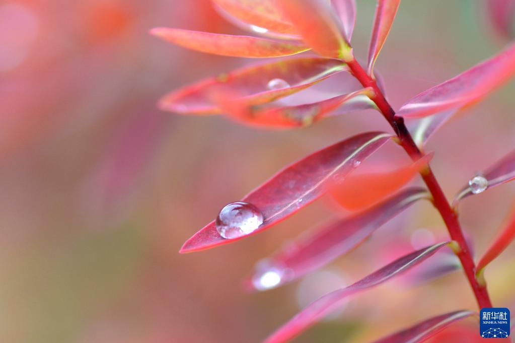 9月4日,在云南省迪慶藏族自治州香格里拉市高山植物園,植物掛著露珠。