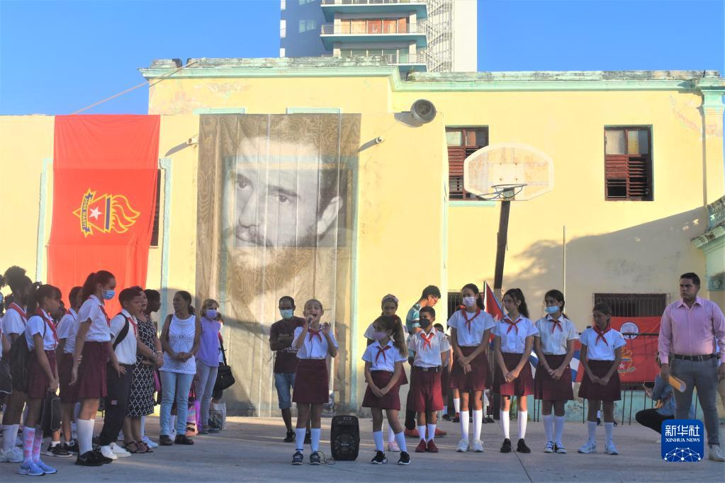 9月5日,在古巴哈瓦那一所小學,學生們參加開學典禮。