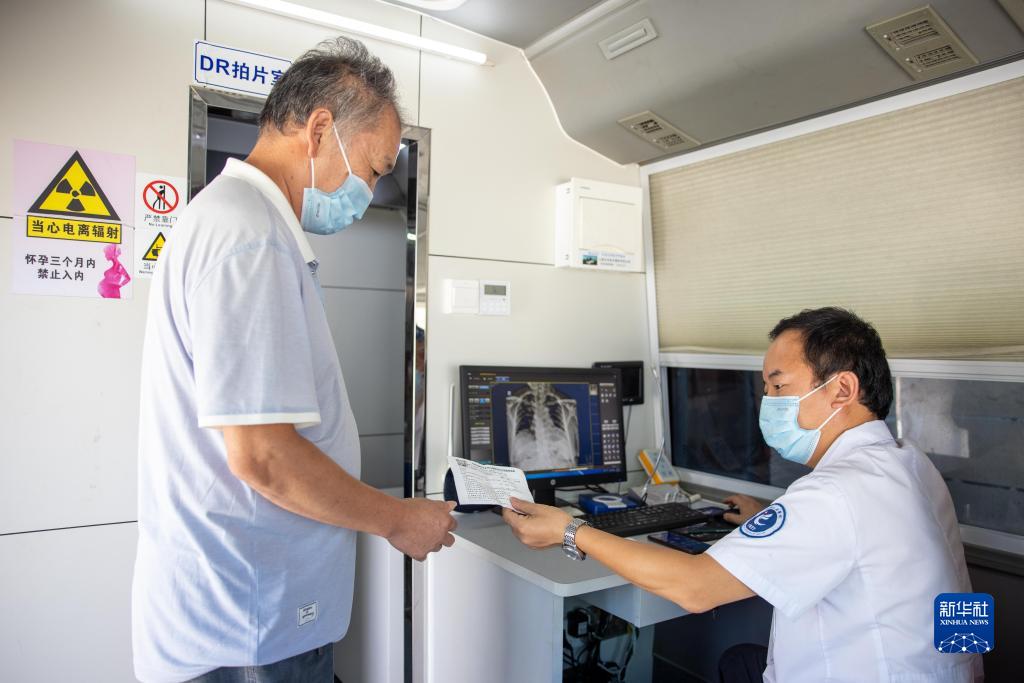 9月6日,武山村村民在巡回診療車上準備接受身體檢查。