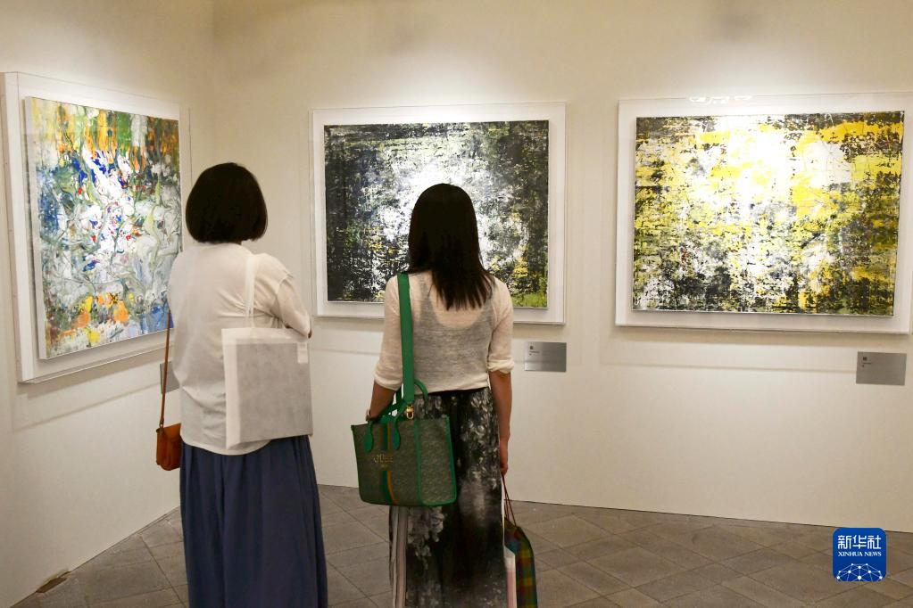 9月3日,觀眾在日本東京舉行的畫展上欣賞王傳峰的作品。