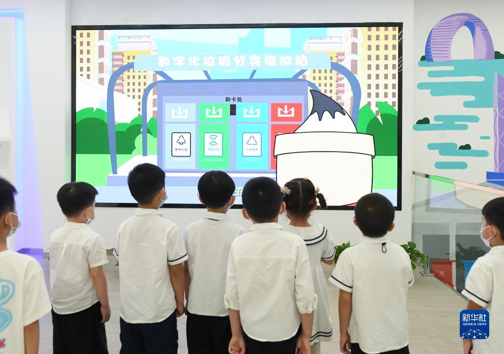 開學伊始,浙江省湖州市實驗幼兒園組織學生參觀垃圾分類宣教館,在趣味講解和游戲中提高節約資源、保護環境的意識。