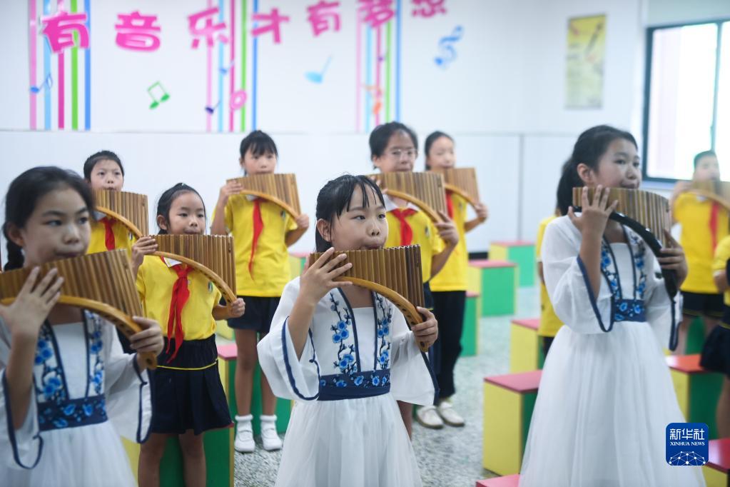 9月6日,板橋鎮板橋小學的學生在上排簫課。