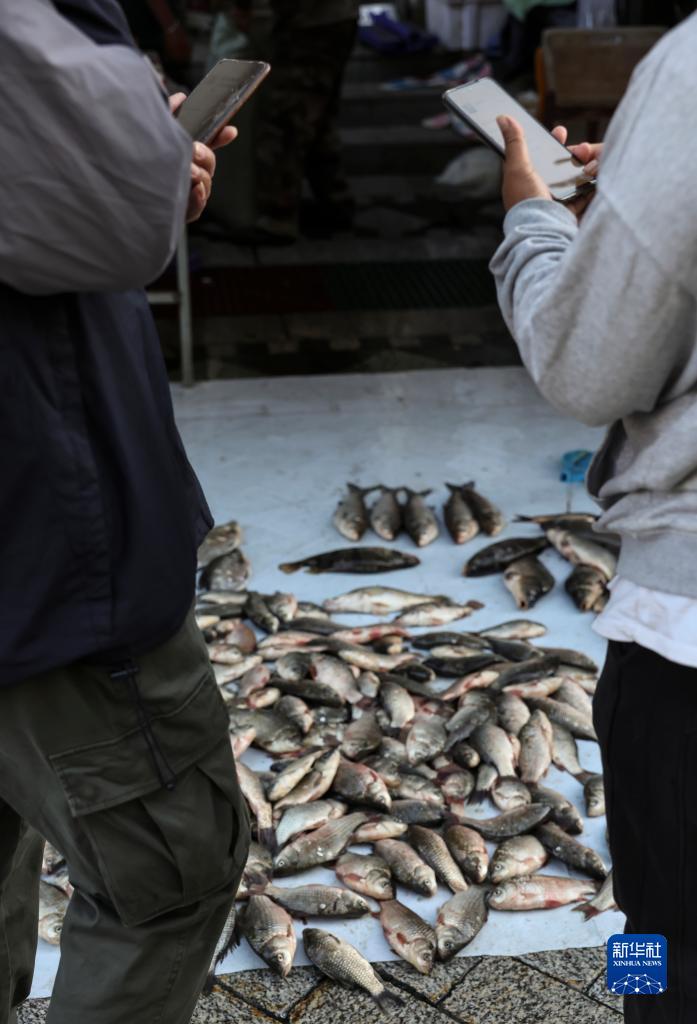 9月4日,在撫遠市東極魚市,市民用手機掃碼支付購魚款。