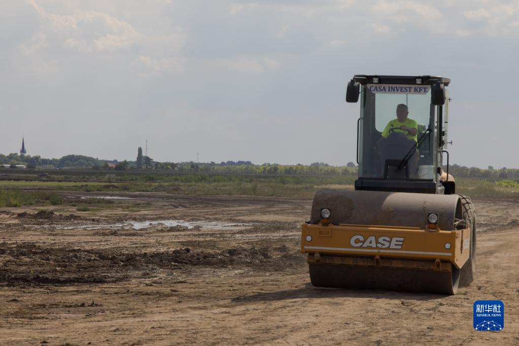 9月5日,在匈牙利德布勒森,工人駕駛壓路機在寧德時代匈牙利工廠工地上施工。