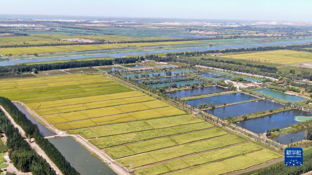 近日,天津市寧河區東棘坨鎮東白莊村種植的百畝“巨型稻”試種田長勢喜人,已進入灌漿期。