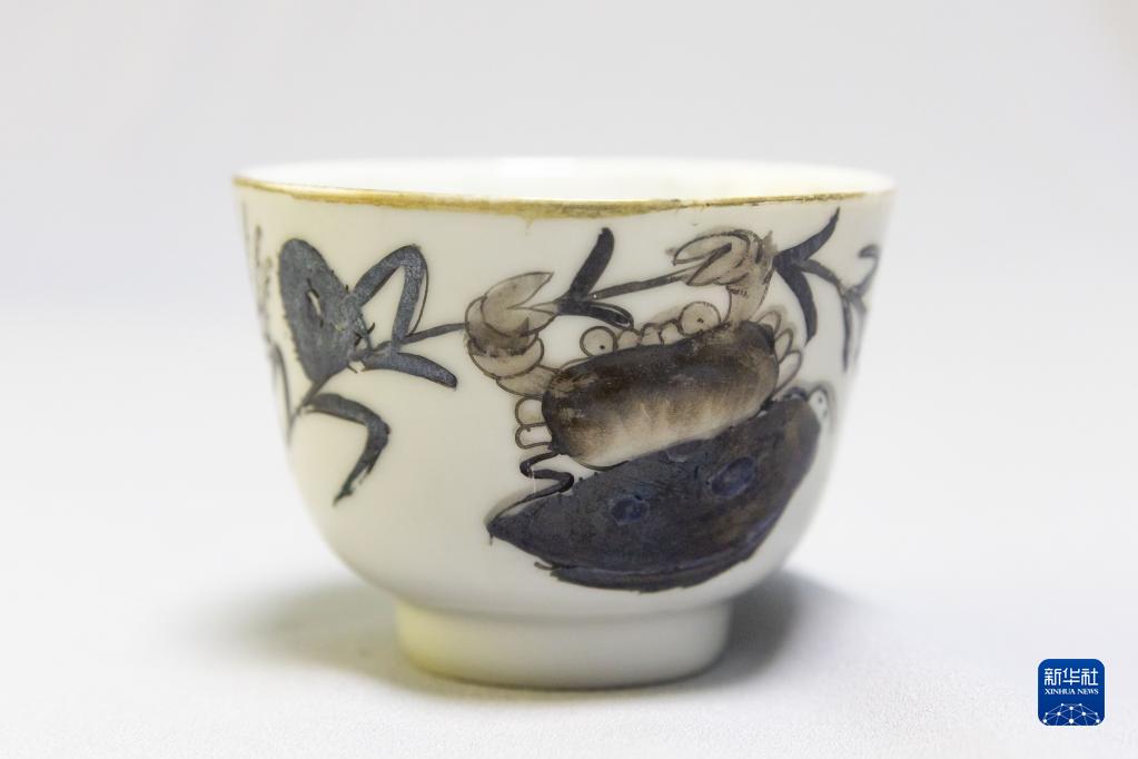 8月23日拍攝的長江口二號古船出水的“二甲傳臚圖”杯。