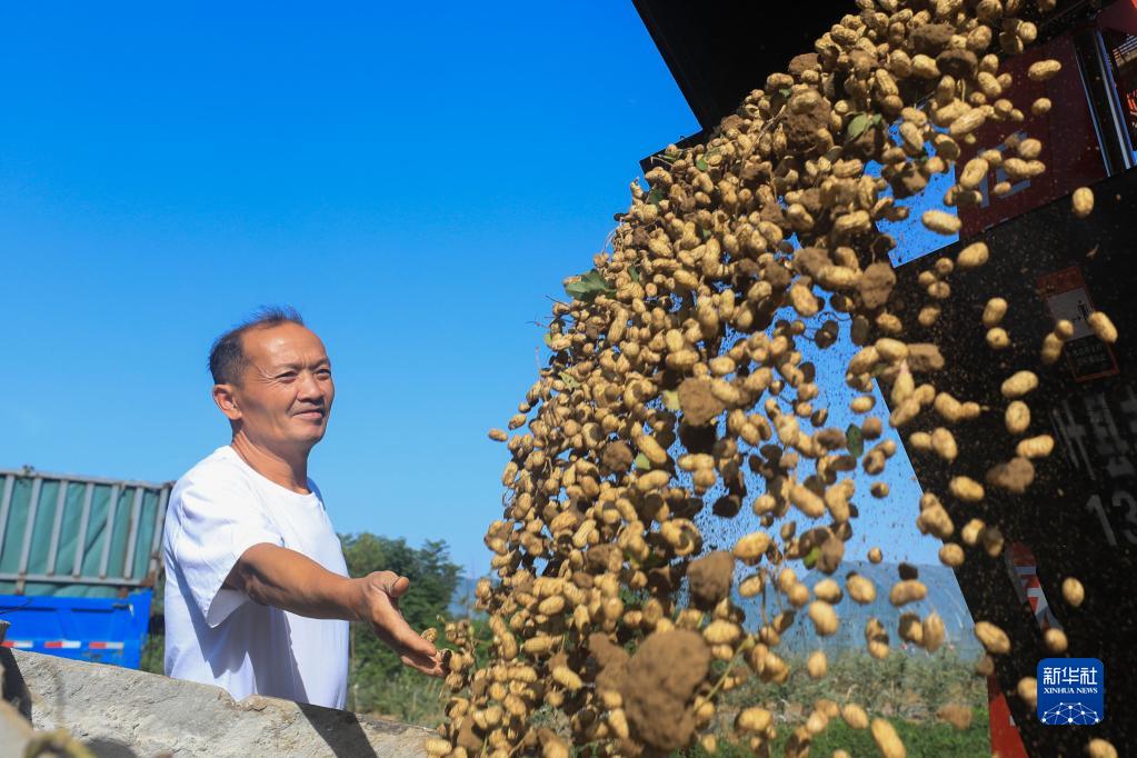 9月6日,河南省平頂山市葉縣任店鎮輝西村農民在收獲花生。