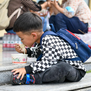 當日,在位于四川省雅安市石棉縣王崗坪鄉挖角村村委會的安置點,村民在安置點內架起鍋灶,生火做飯,為安置點里的鄰里鄉親準備餐食。