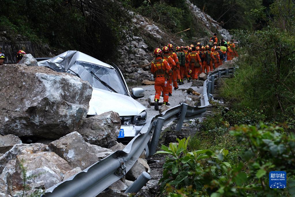 9月5日12時52分,四川甘孜藏族自治州瀘定縣發生6.8級地震,造成重大人員傷亡。地震發生后,四川森林消防總隊組織救援人員進入災區開展救援。新華社發(程雪力 攝)