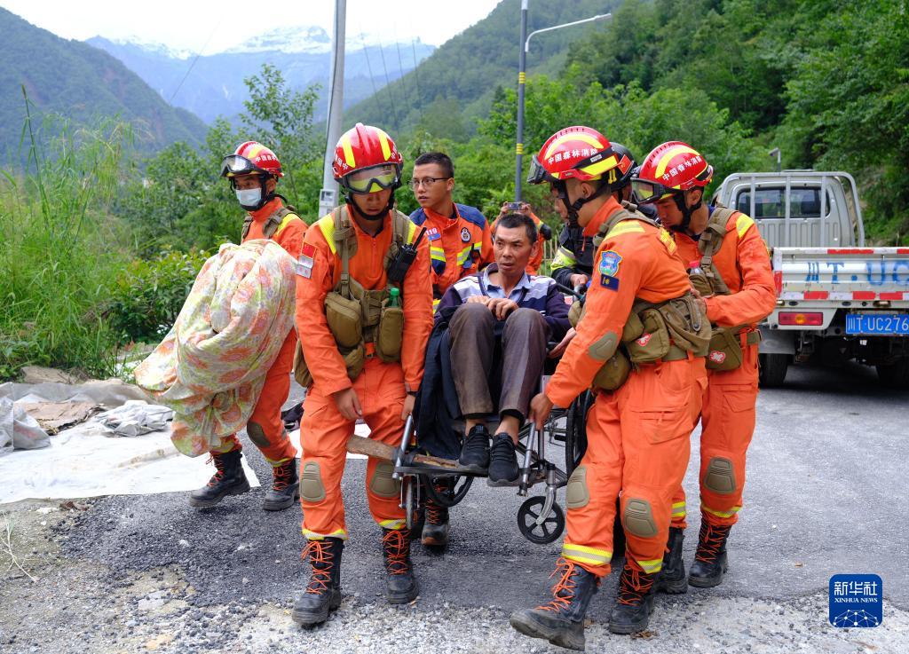 9月5日12時52分,四川甘孜藏族自治州瀘定縣發生6.8級地震,造成重大人員傷亡。地震發生后,四川森林消防總隊組織救援人員進入災區開展救援。新華社發(程雪力 攝)