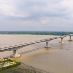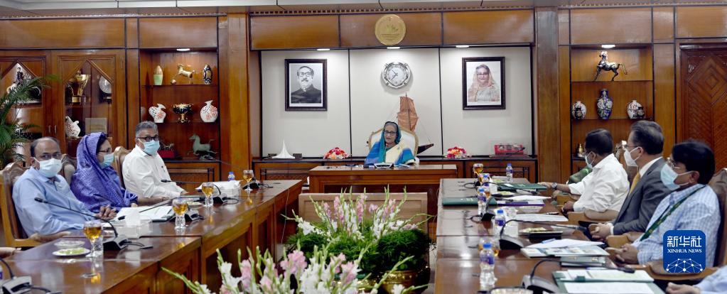 9月4日,在孟加拉國達卡,孟加拉國總理哈西娜(中)出席孟中友誼八橋啟用儀式。新華社發
