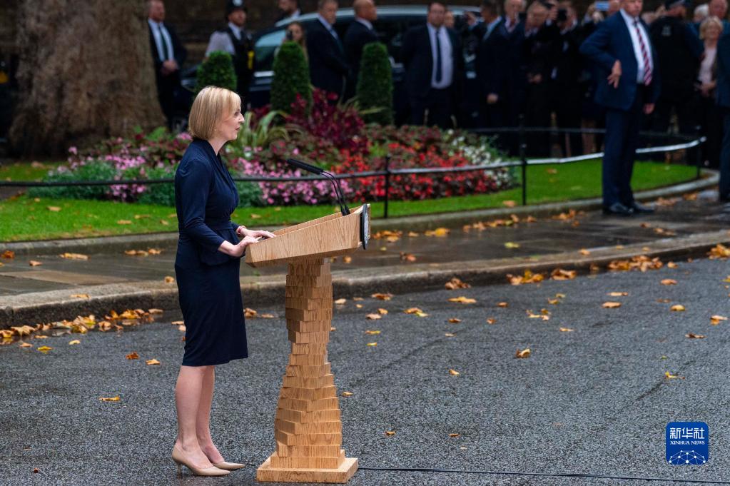 9月6日,在英國倫敦唐寧街10號的首相府,新就任的英國首相伊麗莎白·特拉斯(前)發表講話。