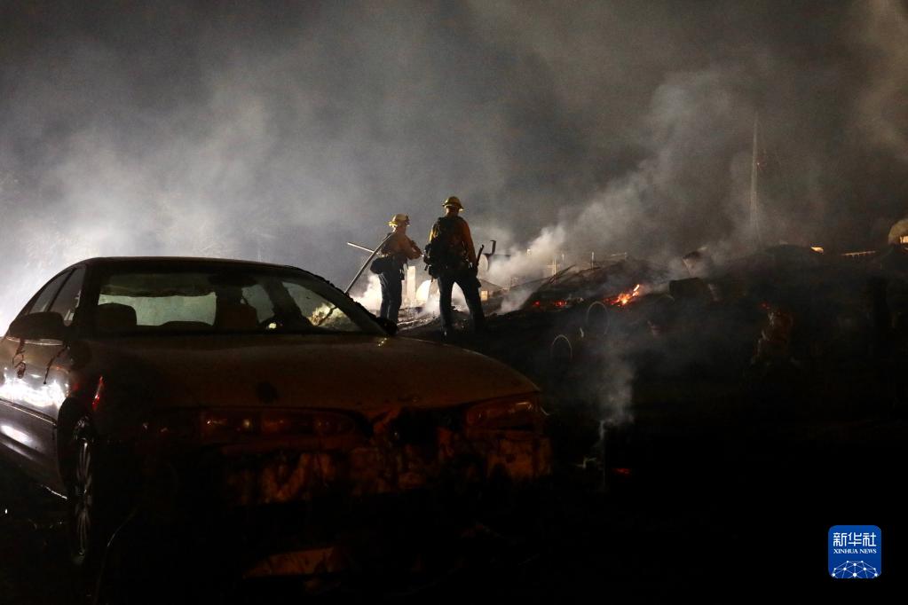 9月6日,消防員在美國加利福尼亞州里弗賽德縣一個社區滅火。新華社發