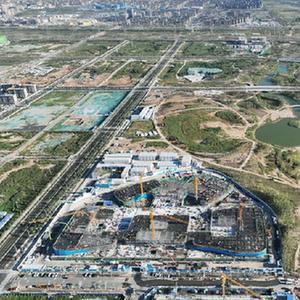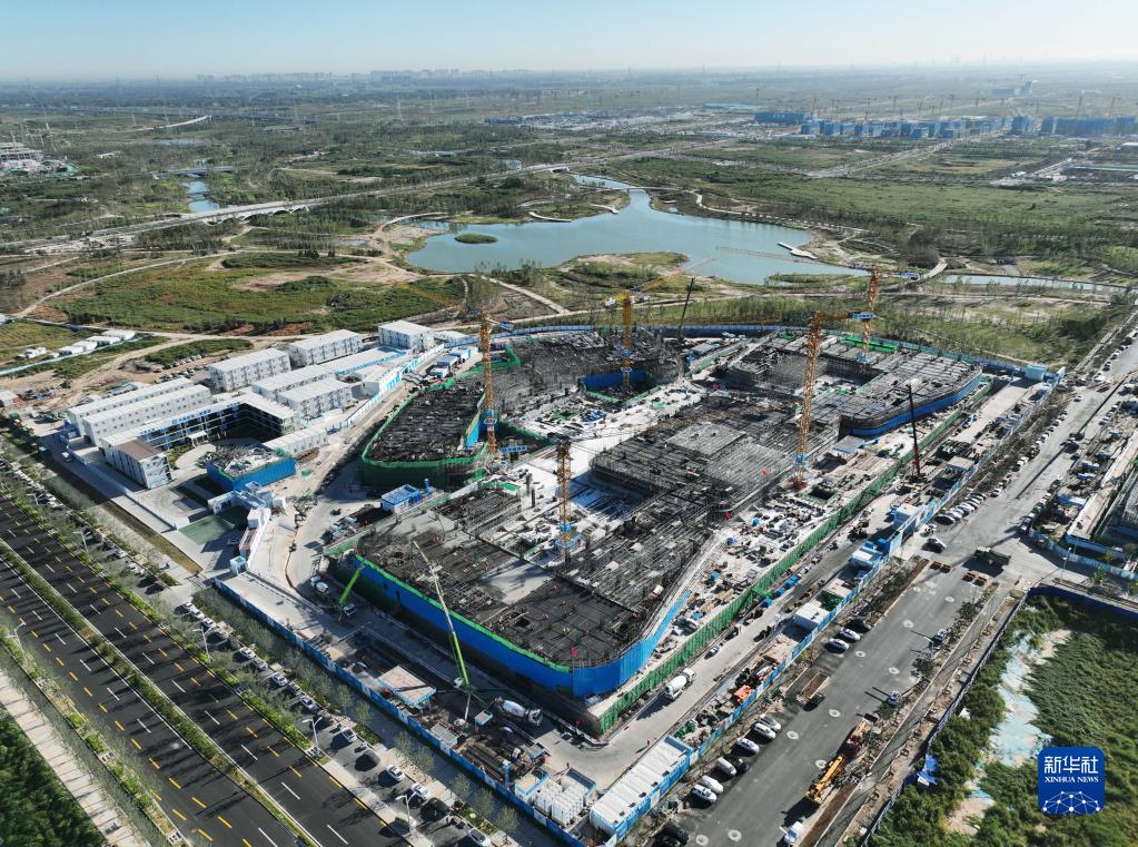 建設中的中國衛星網絡集團有限公司(簡稱中國星網)雄安新區總部大樓(9月7日攝,無人機照片)。