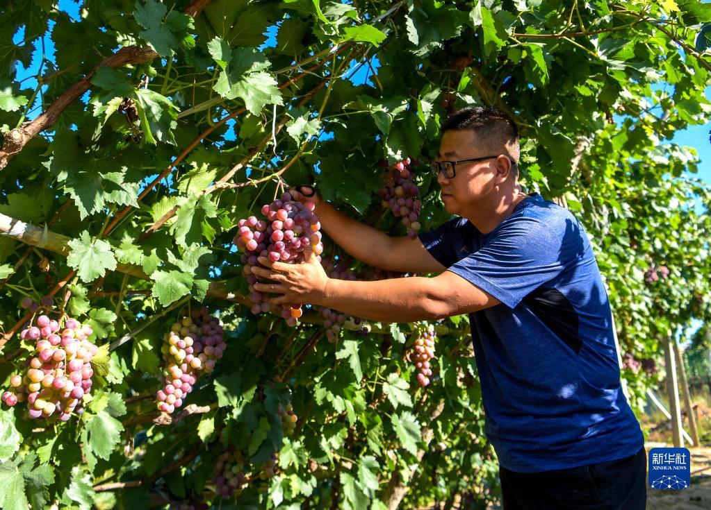 近日,內蒙古自治區呼和浩特市托克托縣郝家窯村的葡萄進入成熟期,葡萄園里一派繁忙景象。近年來,托克托縣利用自然條件優勢,因地制宜發展葡萄種植產業,通過推廣新品種、訂單銷售、農旅融合等措施,帶動當地村民增產增收。