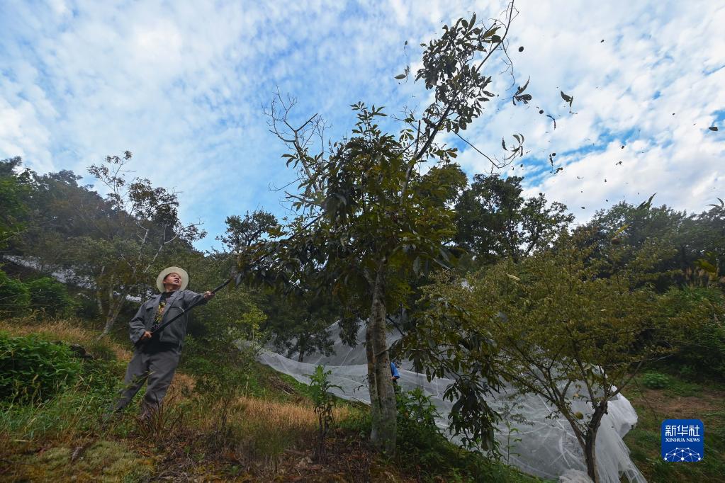 9月7日,淳安縣臨岐鎮審嶺腳村的山核桃林中,農戶在采收山核桃。