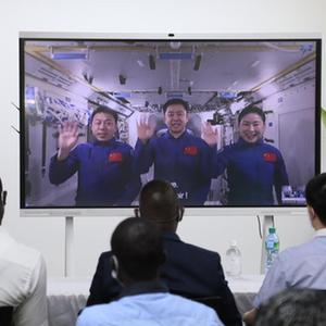 來自埃塞俄比亞、埃及等非洲8國的青少年6日通過網絡視頻與正在中國空間站執行任務的神舟十四號航天員進行“天宮對話”活動,互動場面氣氛熱烈,妙趣橫生。當天活動的主會場設在位于埃塞俄比亞首都亞的斯亞貝巴的非洲聯盟(非盟)委員會總部,并在阿爾及利亞、埃及、埃塞俄比亞、納米比亞、尼日利亞、塞內加爾、索馬里和南非共8個國家設立分會場,來自中非各界近千人出席。