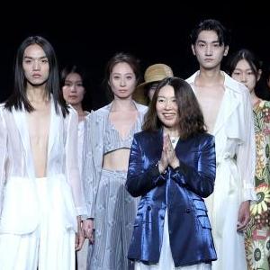 9月7日,模特在展示設計師王鳳設計的時裝。