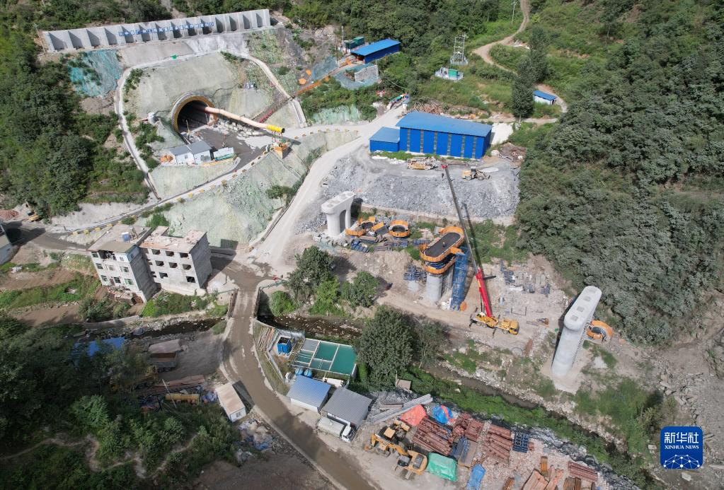 位于陜西旬陽縣境內的一處西康高鐵建設現場(9月6日攝,無人機照片)。