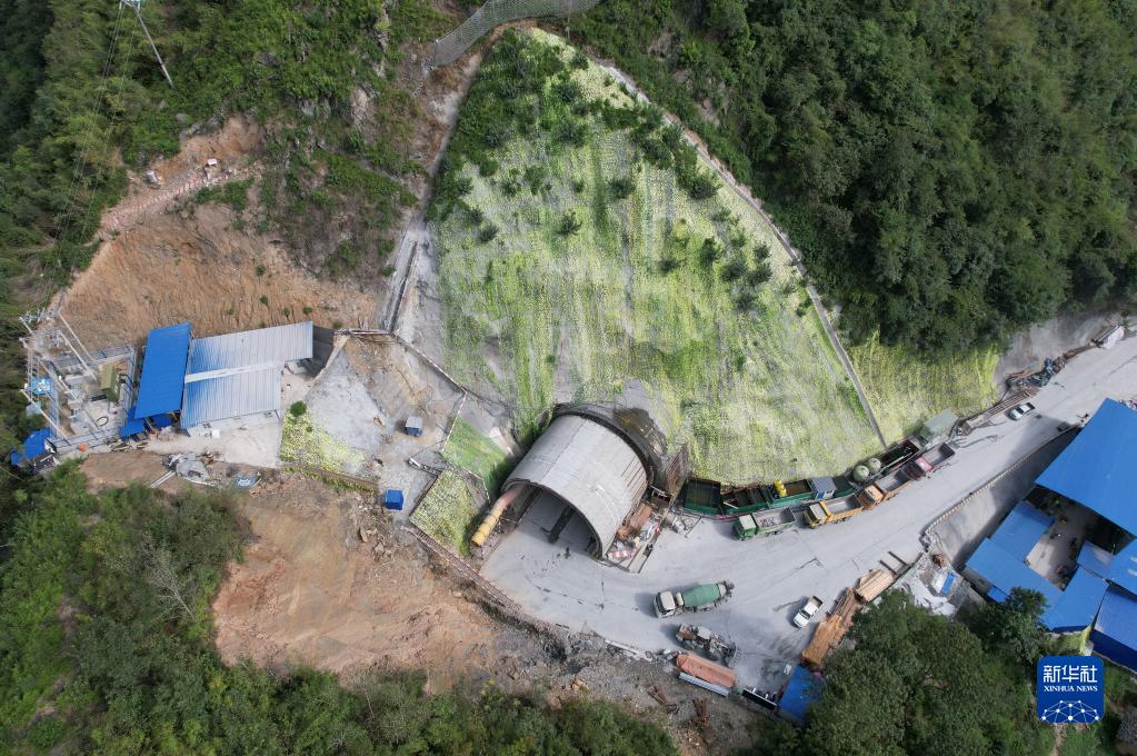 施工中的西康高鐵一處隧道口(9月6日攝,無人機照片)。