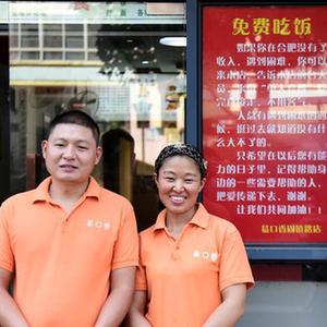 孫玉喜和王素俠夫妻是這家小店的老板,他們在外打拼多年,2015年在合肥投資開了這家小店?;叵肫鹱约涸浽谕獯蚱磿r的不易,夫妻倆決定讓遇到困難、手頭拮據的客人在店內免費用餐。