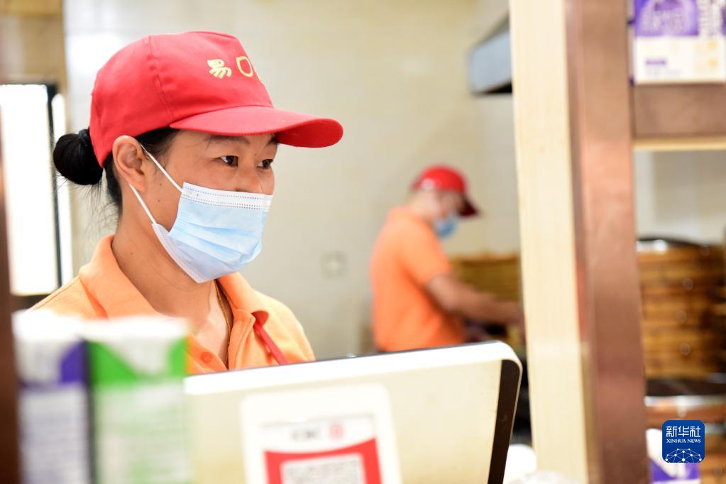 9月6日,王素俠(左)在早餐店內為顧客點餐。