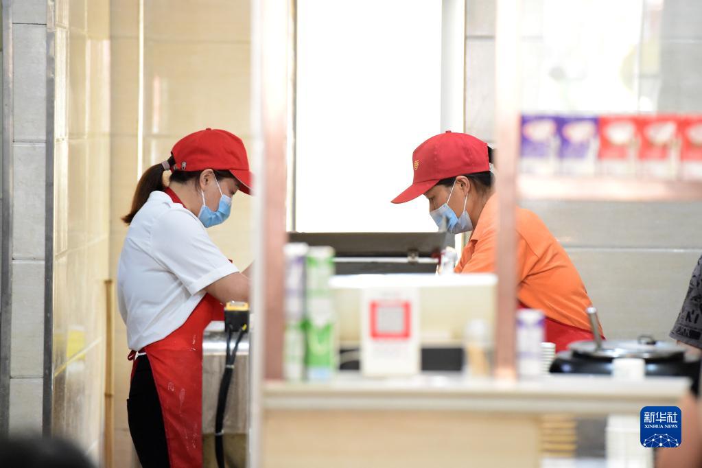 9月6日,王素俠(右)和店員在早餐店內忙碌。