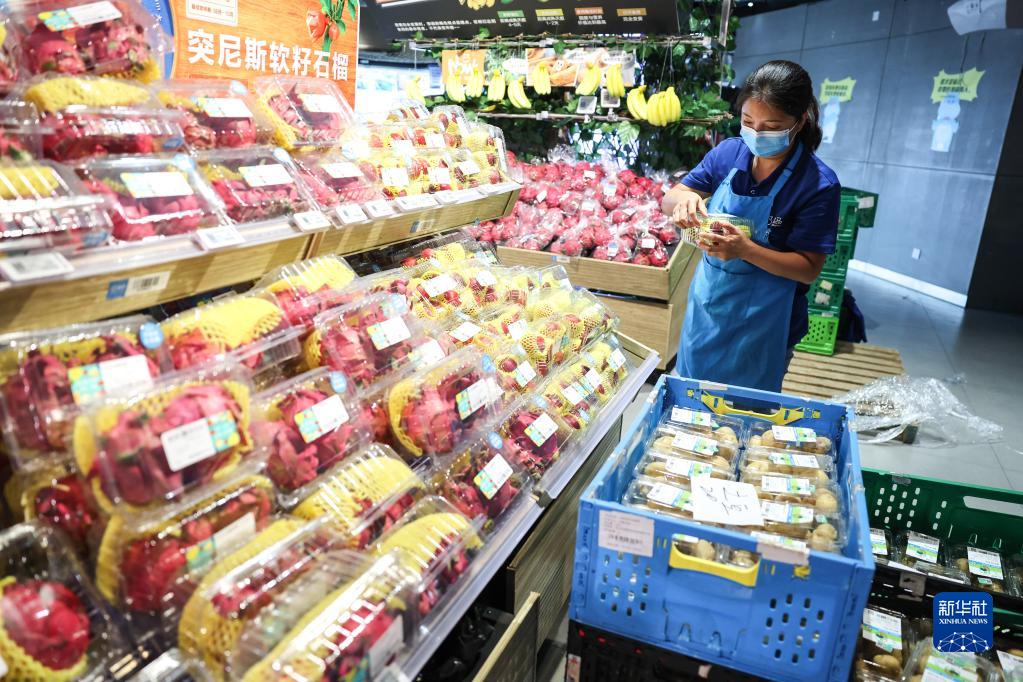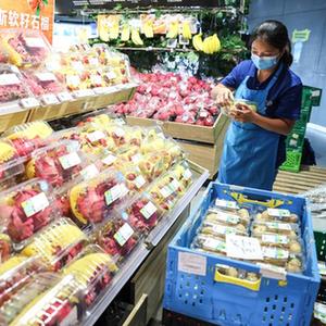 9月7日,貴陽一生鮮超市工作人員在分揀水果。