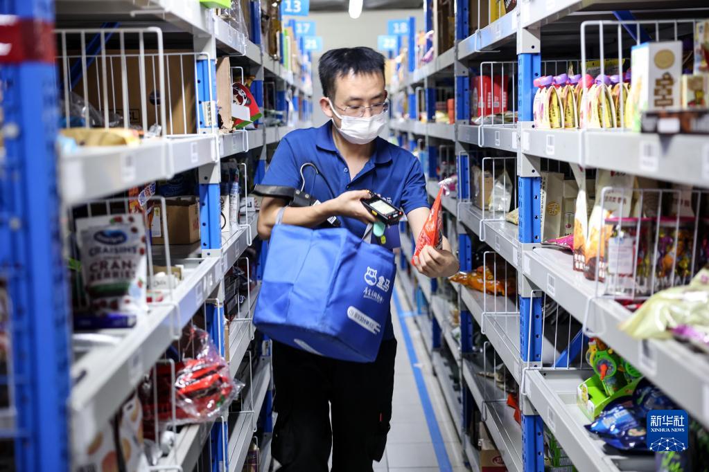 9月7日,貴陽一生鮮超市工作人員在分揀貨物。新華社記者 歐東衢 攝