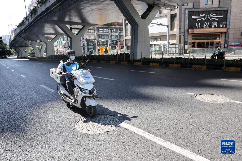9月7日,配送員在配送生活物資。新華社記者 歐東衢 攝