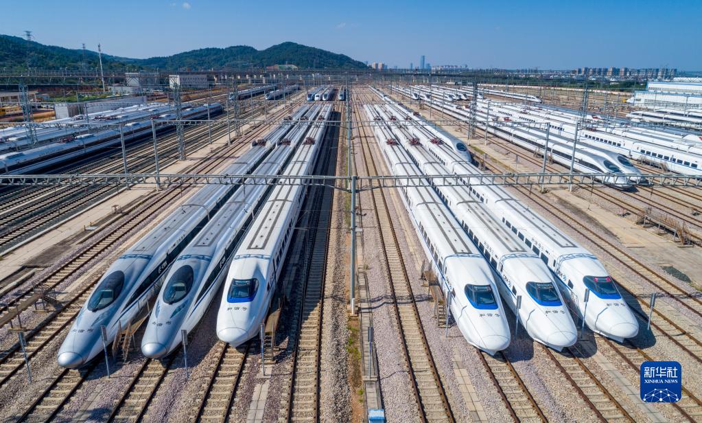 這是9月7日在昆明動車所內拍攝的動車組列車(無人機照片)。