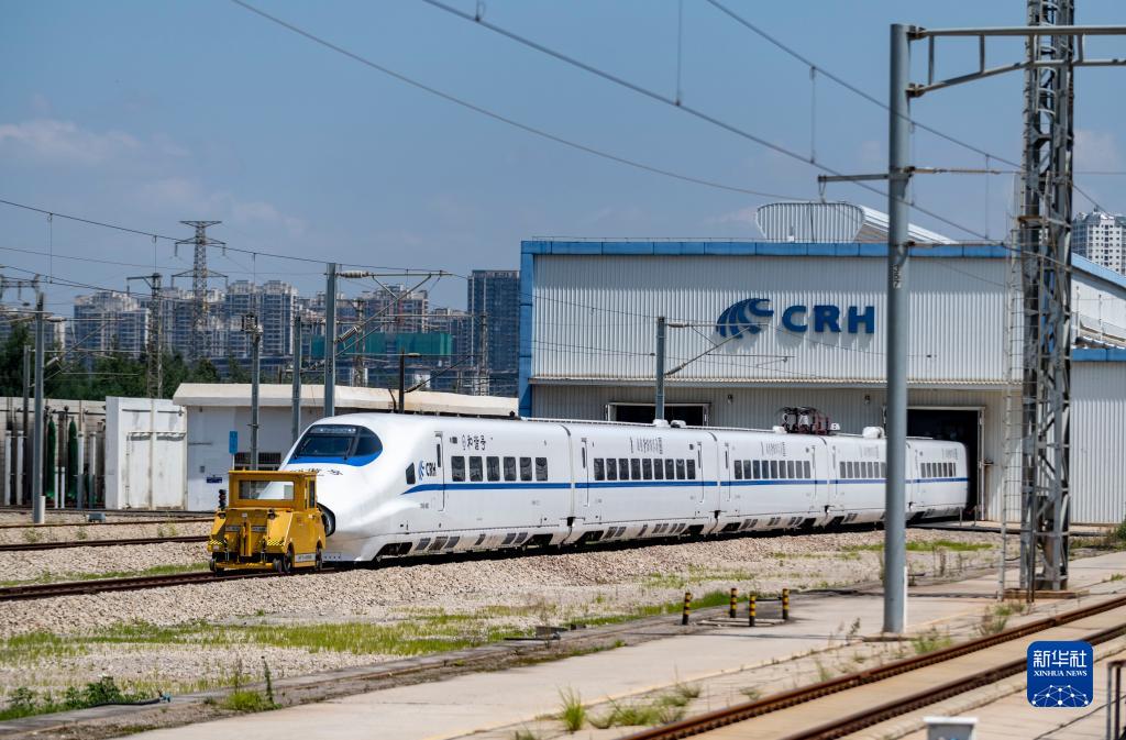 9月7日,牽引車在昆明動車所內牽引一列動車組列車進行鏇輪作業。
