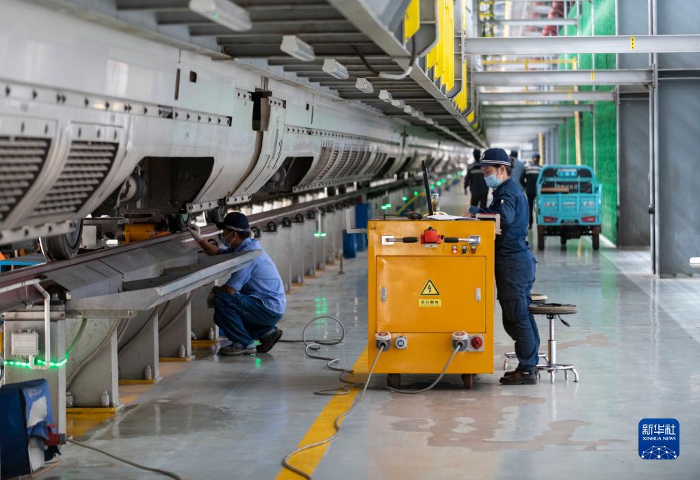 9月7日,工作人員在昆明動車所內對一列動車組列車進行檢測。