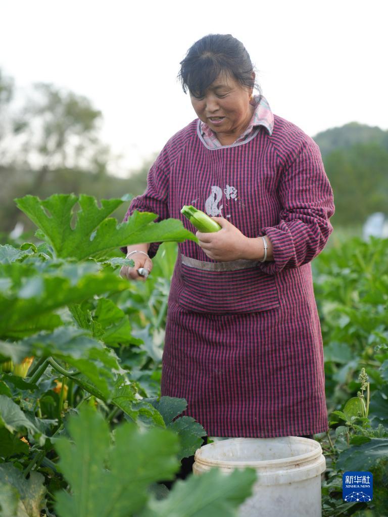 9月5日,工作人員在位于麟游縣九成宮鎮西坊村的農業示范園采摘西葫蘆。