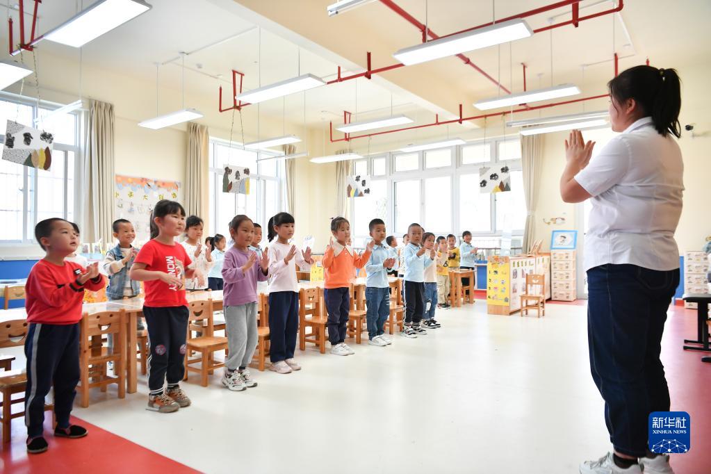 9月5日,師生在麟游縣九成宮鎮南坊新城移民搬遷安置社區配建的幼兒園內上課。