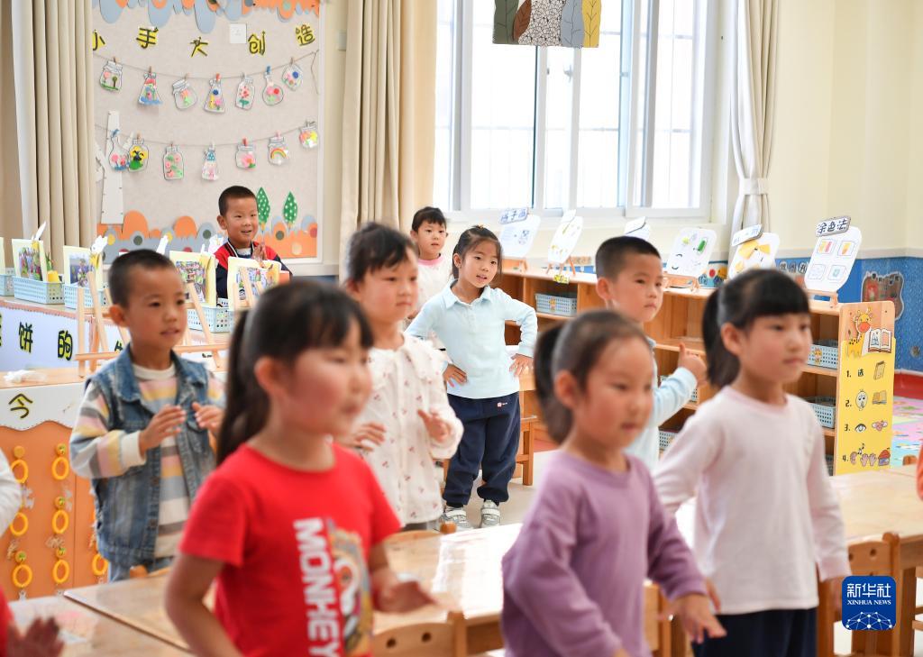 9月5日,小朋友在麟游縣九成宮鎮南坊新城移民搬遷安置社區配建的幼兒園內活動。
