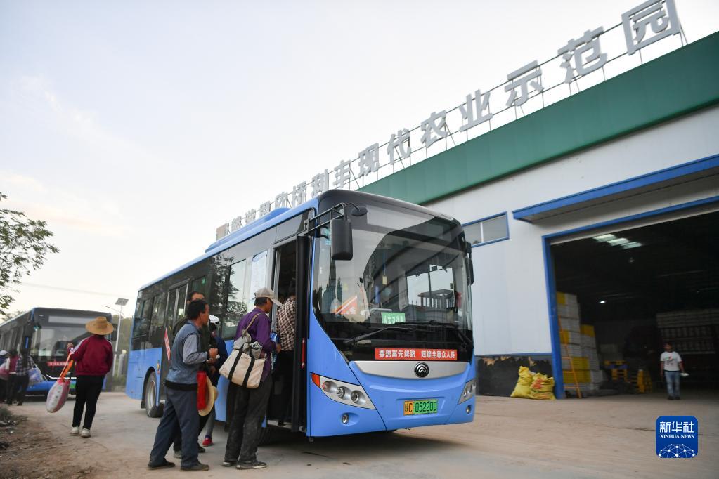 9月5日,來自安置社區的務工人員結束一天的工作后,從位于麟游縣九成宮鎮西坊村的農業示范園乘坐通勤班車返回住地。