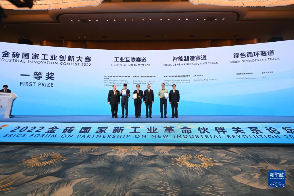 9月7日,2022金磚國家工業創新大賽一等獎獲得者和頒獎嘉賓合影。