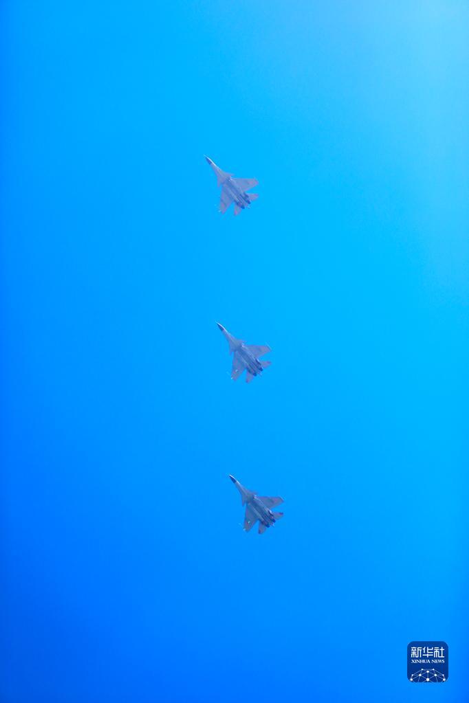 海軍航空大學某基地組織高強度多課目飛行訓練,殲-15戰機進行編隊飛行(8月10日攝)。