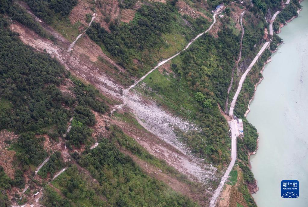 這是9月7日拍攝的雅安市石棉縣王崗坪彝族藏族鄉幸福村二組附近的照片,可看到山體多處滑坡(無人機照片)。