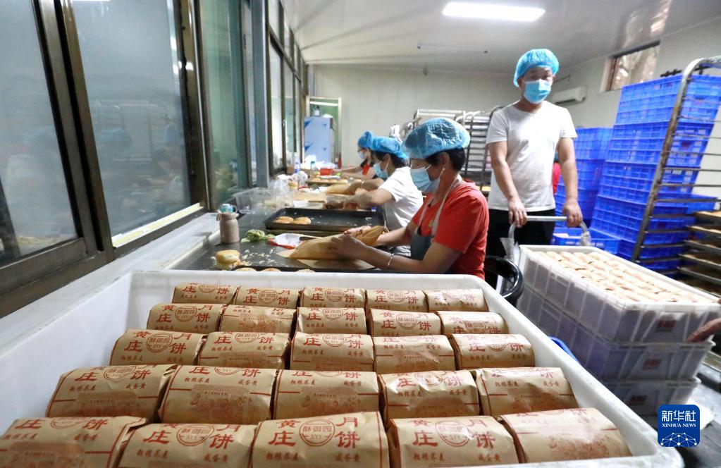 9月7日,在河北省石家莊市藁城區黃莊村一家月餅生產企業,工人在包裝成品月餅。