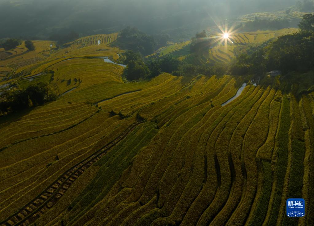 入秋以來,世界遺產地哈尼梯田的稻谷相繼成熟,從山腳到山頂,村民們陸續開鐮收割,收獲季會持續至十月中旬。