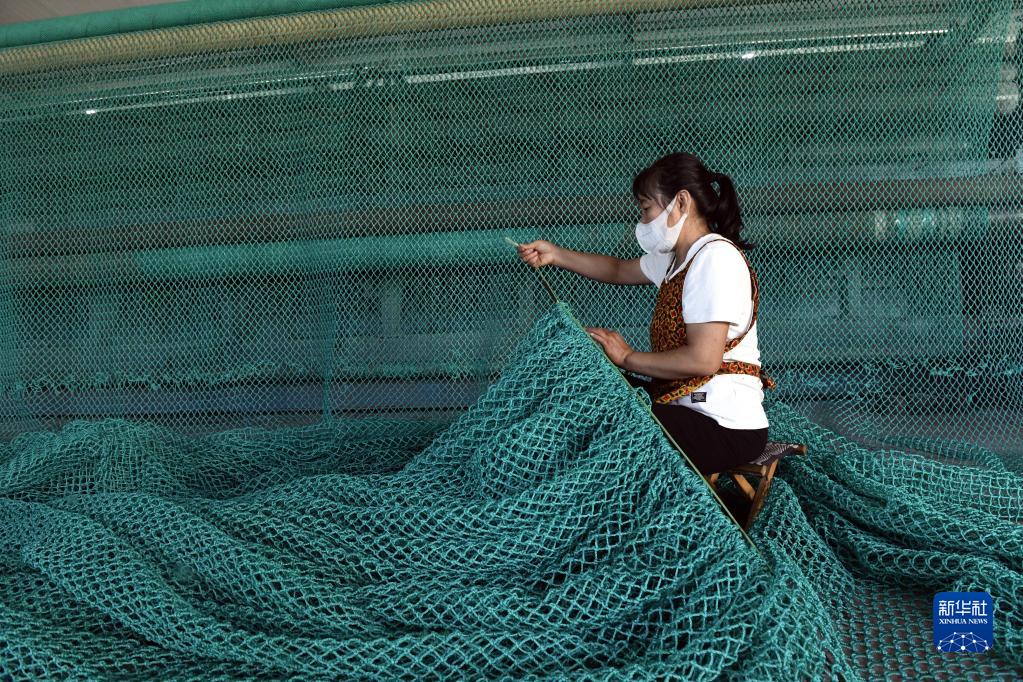 9月7日,無棣縣小泊頭鎮一漁網加工企業的工人,在整理加工好的漁網。