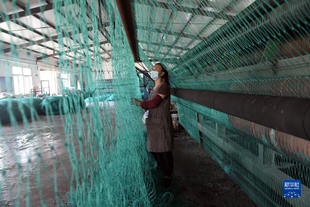 9月7日,無棣縣小泊頭鎮一漁網加工企業的技術員,在檢查加工好的漁網。