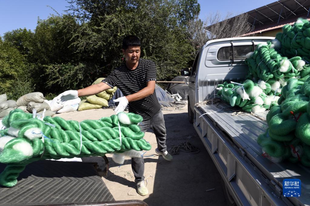 9月7日,在無棣縣小泊頭鎮一漁網加工企業,工人在裝運銷往廣州的漁網。
